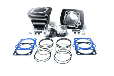 1200cc XL Conversion cylinder and piston set includes 2 black finished with milled edge fin cylinders with fitted Wiseco 10:1 piston and ring set with base and head gasket included. No head work necessary. Fits:XL 1986-2003 UOM: 1 - KIT Manufacturer: V-Twin 2011 Catalog pages: 795 Does not require any machining 11-9846 - 883cc Forged Conversion Piston Kit Standard 15-0389 - V-Twin Head Base Gasket Kit SAV for Harley Davidson Motorcycles