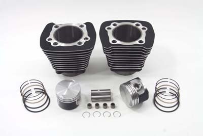 Replica Evolution black cylinder and piston kit are pre fitted with cast 9:1 pistons and rings. Fits:XL 1988-2003 UOM: 1 - KIT Manufacturer: Replica 2011 Catalog pages: 796 11-9761 - Replica 1200cc Piston Set Standard 11-0190 - 3-1/2" Evolution Piston Ring Set, Standard SAV for Harley Davidson Motorcycles