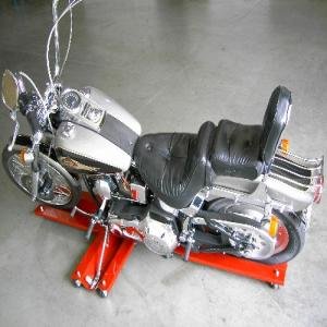 The Cycle Dolly is a one-person user-friendly motorcycle stand/mover. One person can load, move, and unload a motorcycle in a matter of minutes. Most people who own a motorcycle have to share a garage with a car or other items, the Cycle Dolly allows a person to put their cycle in a corner or up against a wall with a push of their hand! The really great thing about this dolly is the fact that the V Channel is set only off the ground, which makes for easy loading/unloading, and the V Channel holds almost any size tires so the thought of tipping is virtually non-existent. The Cycle Dolly has an adjustable kickstand plate and will hold anything from a small Honda 150 to a full dress Harley Davidson. It is also made of steel with the Poly casters and will hold up to a 1500 lb. bike.