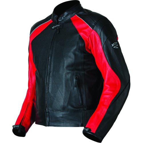 Constructed from strong and soft genuine top grain leatherAll major seams are multi-stitched for maximum safetyChest, back and arm panels are fully perforated for ventilation during warm weatherSoft polyester mesh inner liningPleated panels are used on both sides of the waist for the finest non-binding fit possiblePre-curved arms for a perfect look, fit and for maximum riding comfortRemovable high impact CE approved dual-density protection armor on elbows and shoulders8mm foam back padWaist connection with high-quality YKK zipper for pant attachmentTwo front hand warmer pockets with zipper closureExtra long zipper pulls are used on all zippersTwo vertical pockets on the inside of the jacketReflective piping on the front and back of the shoulders for added night-time safetyAvailable in sizes US 40-48, solid black also available in sizes 50-562012 Model