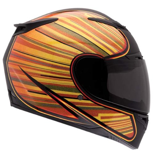 Bell RS-1 RSD Flash Full Face Motorcycle HelmetThe all-new Bell RS-1 bridges the gap between the top-of-the-line Bell Star and the value-minded Vortex with an amazing blend of mid-line price and performance. Starting with a lightweight Kevlar/fiberglass composite shell, the RS-1 brings it with Bells vaunted Velocity Flow Ventilation system providing cool comfort, a super stable aerodynamic profile keeping the helmet still at speed, and the versatile Click Release shield system for fast, easy shield swaps, not to mention an amazing variety of tint and coating choices.Contour Cut Cheekpads and a plush, removable, washable liner cradle the head in comfort while Bells exclusive Magnafusion magnetic strap keeper makes flapping strap ends a thing of the past. All said, its one great helmet at a modest price.
